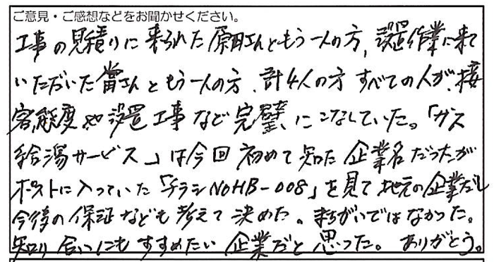 給湯器本体と施工した箇所を10年間保証いたします。